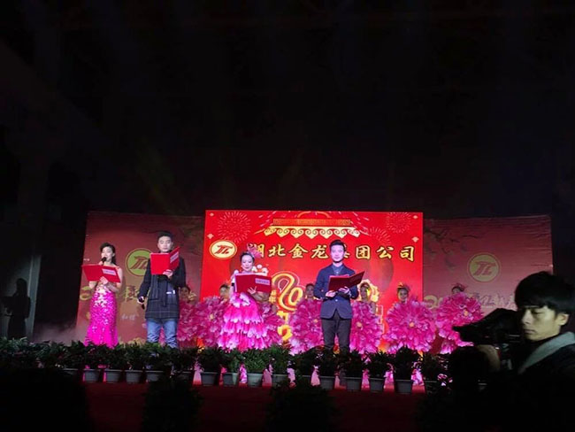 2月3日晚上6點,經(jīng)過一個月的籌備,湖北金龍集團公司迎新春文藝晚會隆重拉開帷幕,公司所有職工及家屬共同享受了這場視覺盛宴。晚會節(jié)目都由公司員工結(jié)合公司產(chǎn)品和實際情況自編自演的,其中有用公司產(chǎn)品做成服裝的T臺秀、小品、三句半、相聲、書畫表演、二胡、舞蹈等近三十個節(jié)目,同時晚會期間公司領(lǐng)導發(fā)出了上萬元微信紅包,點燃現(xiàn)場員工及家屬的熱情,引來了公司附近很多群眾的觀看。